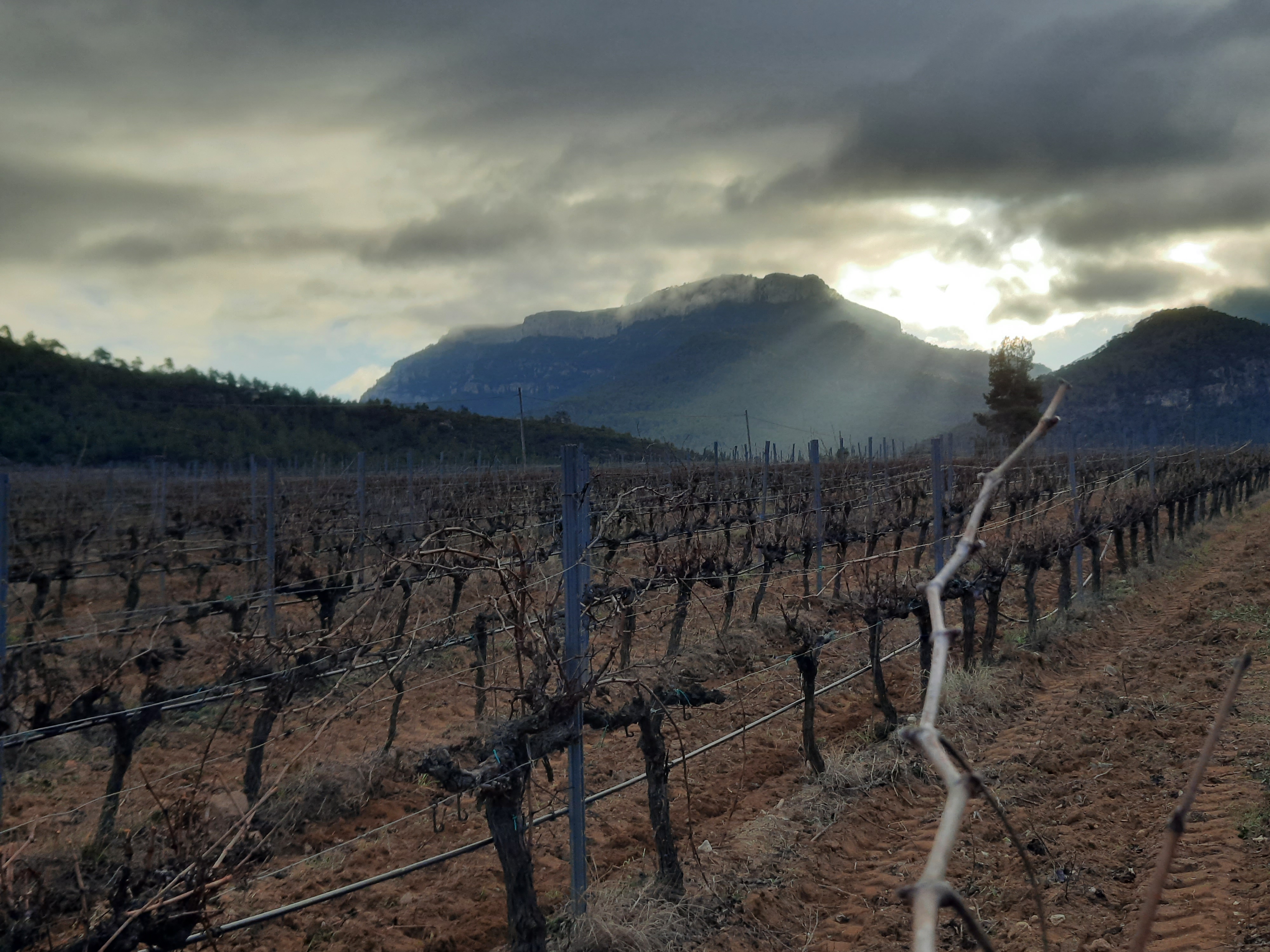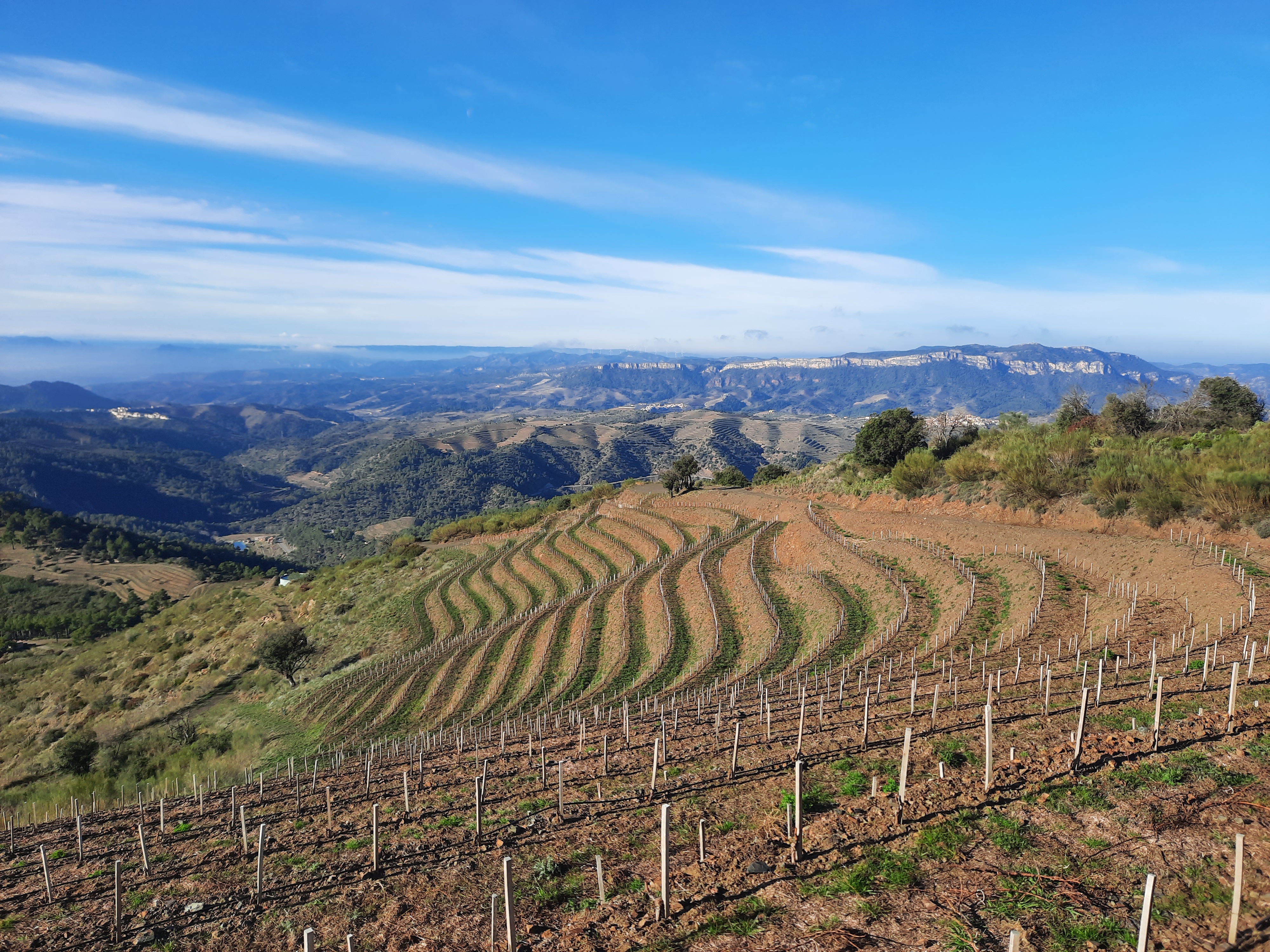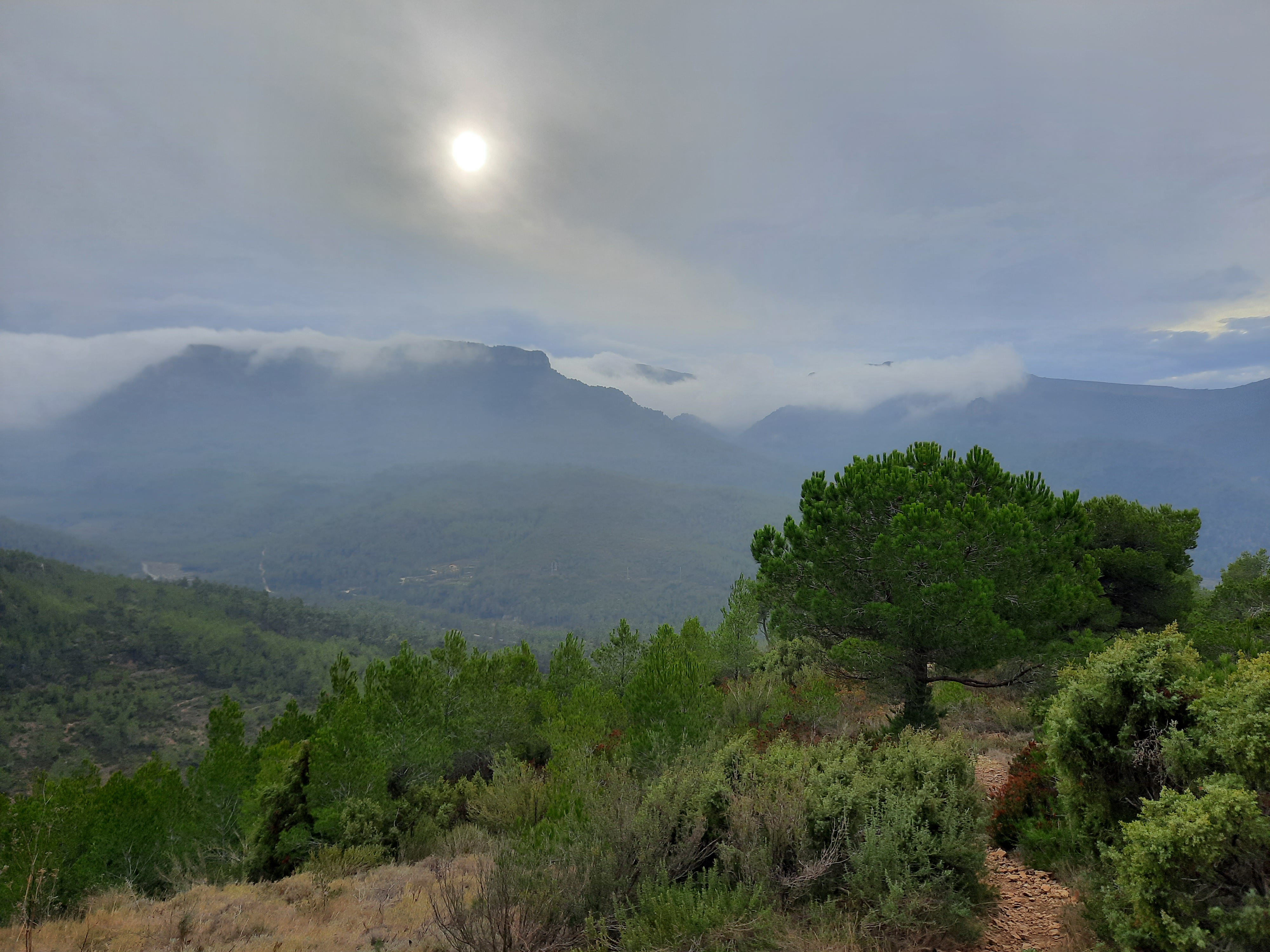 Seguim per la carena, uns 100 m., al costat d’una vinya, fins que trobem que comença un sender a l’esquerra, és un sender carener que ens portarà a la Serra Alta, al cap de 800 m., arribarem a la Pedra de Terme, al costat d’unes vinyes, serem als Escurçons, però abans haurem passat per un punt on hi ha una roca amb 360º de vistes espectaculars.