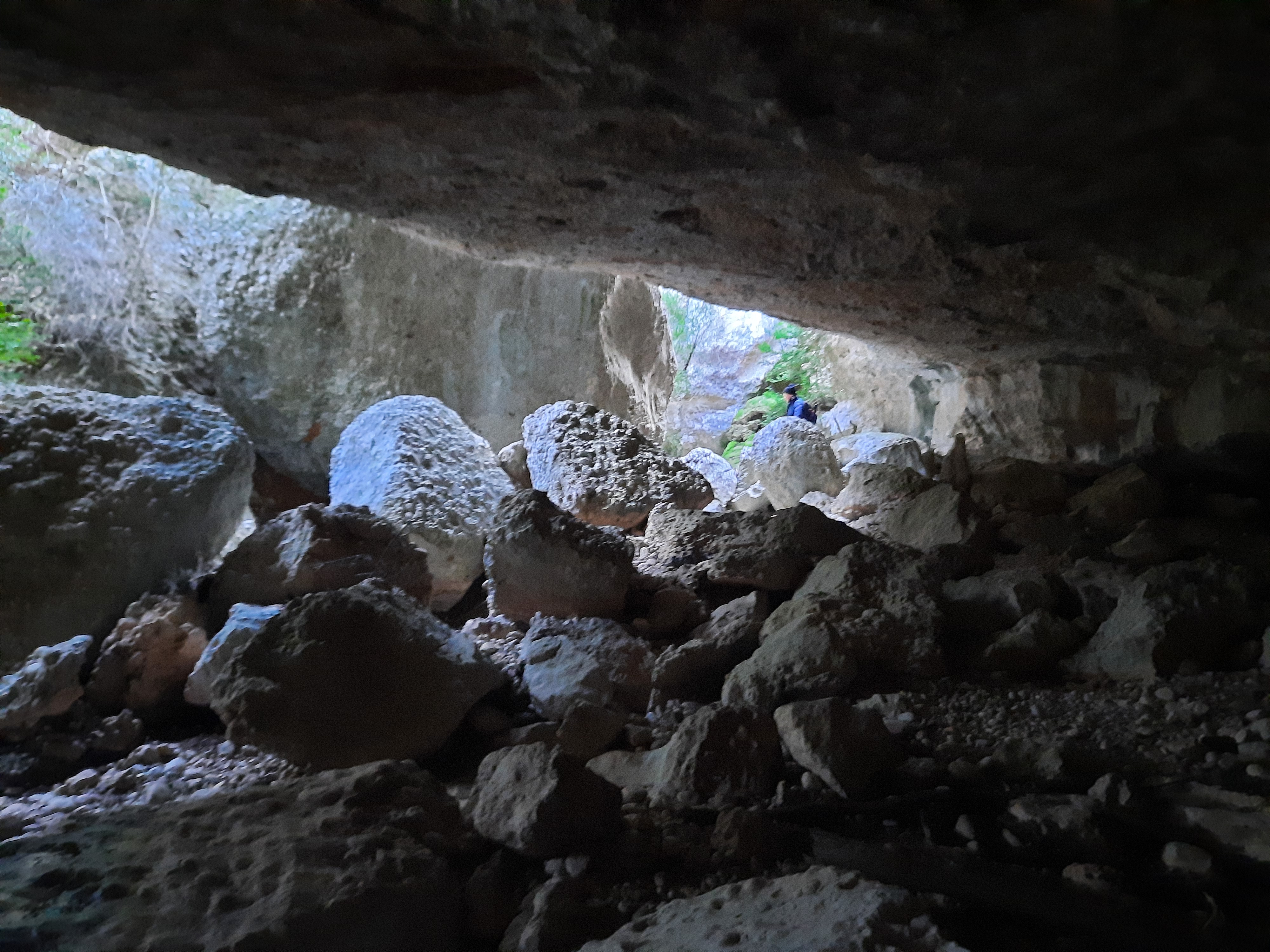 cal seguir unes petites fites de pedres, i en 1,2 km., arribarem al Portalet o Punta del Tomasset, (ho trobareu escrit al terra), on girem a l’esquerra, al cap de 200 m., arribarem a sender o camí de la capçada on girarem a la dreta i farem 50 m., fins trobar el sender que baixa a l’esquerra cap a la cova Santa, on arribarem al cap de 200 m.,