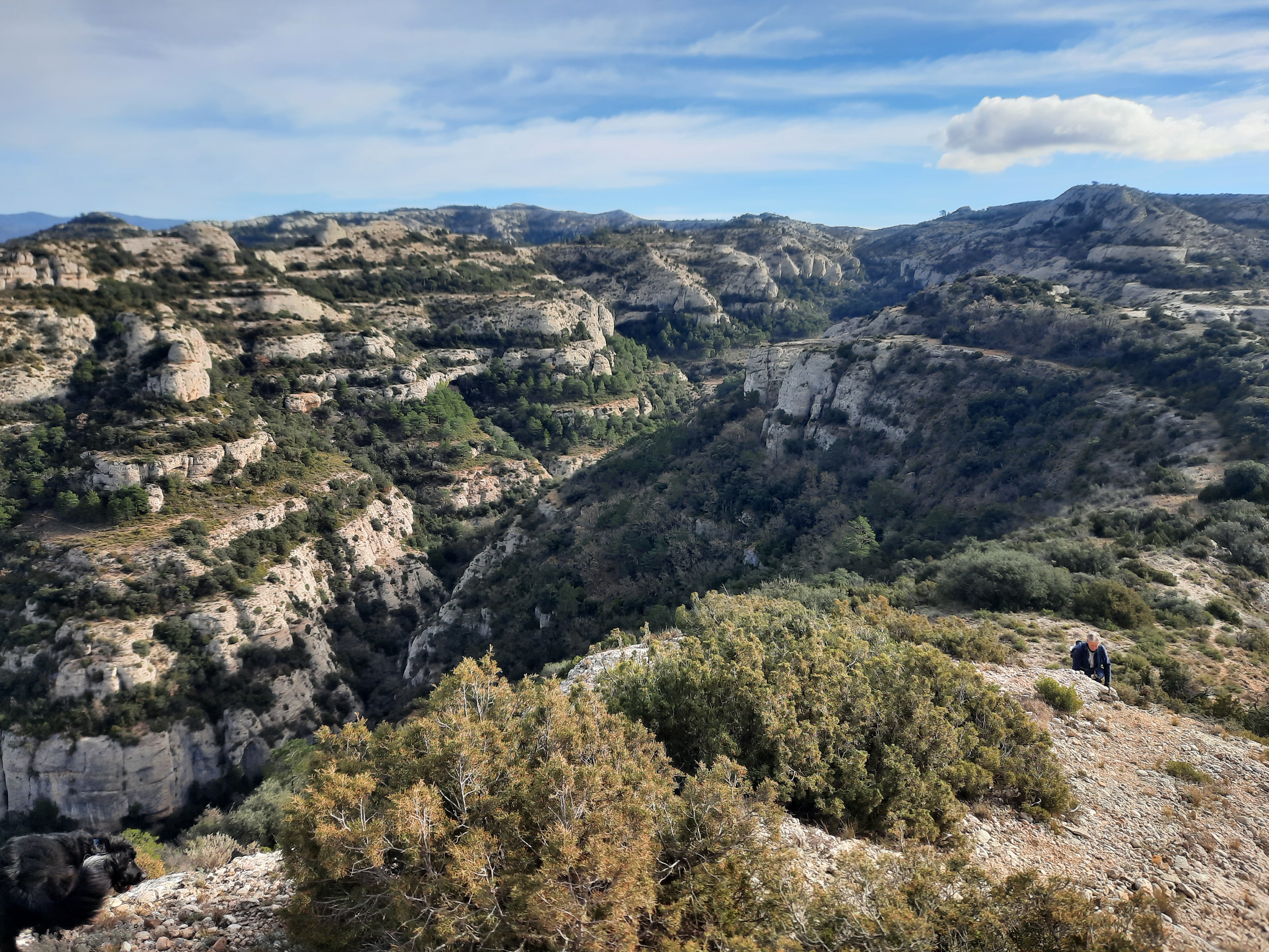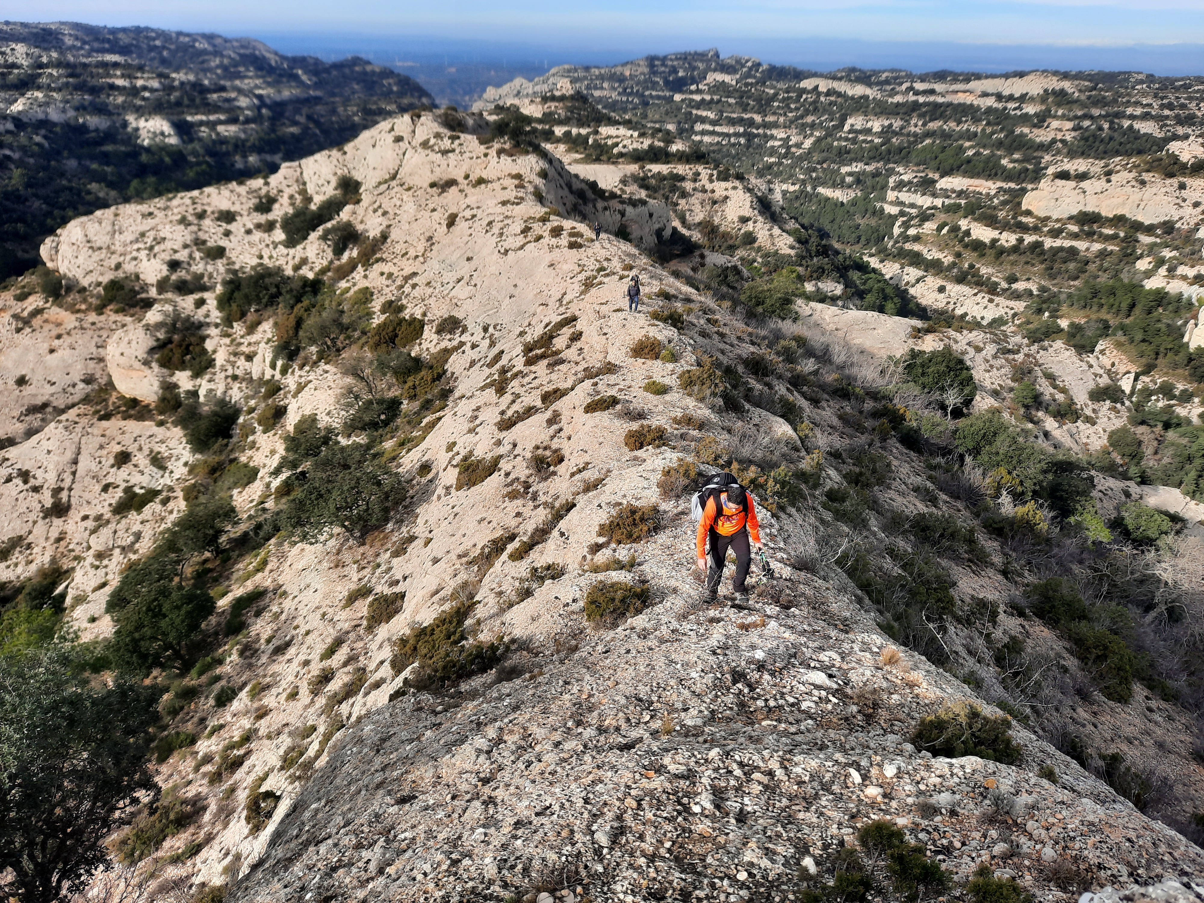 Tornem al sender i a partir d’aquí pujarem per la carena entre el barranc de la Bruixa i el barranc dels Forats o dels Cingles del Rodés, carena amb vistes aèries exclusives,