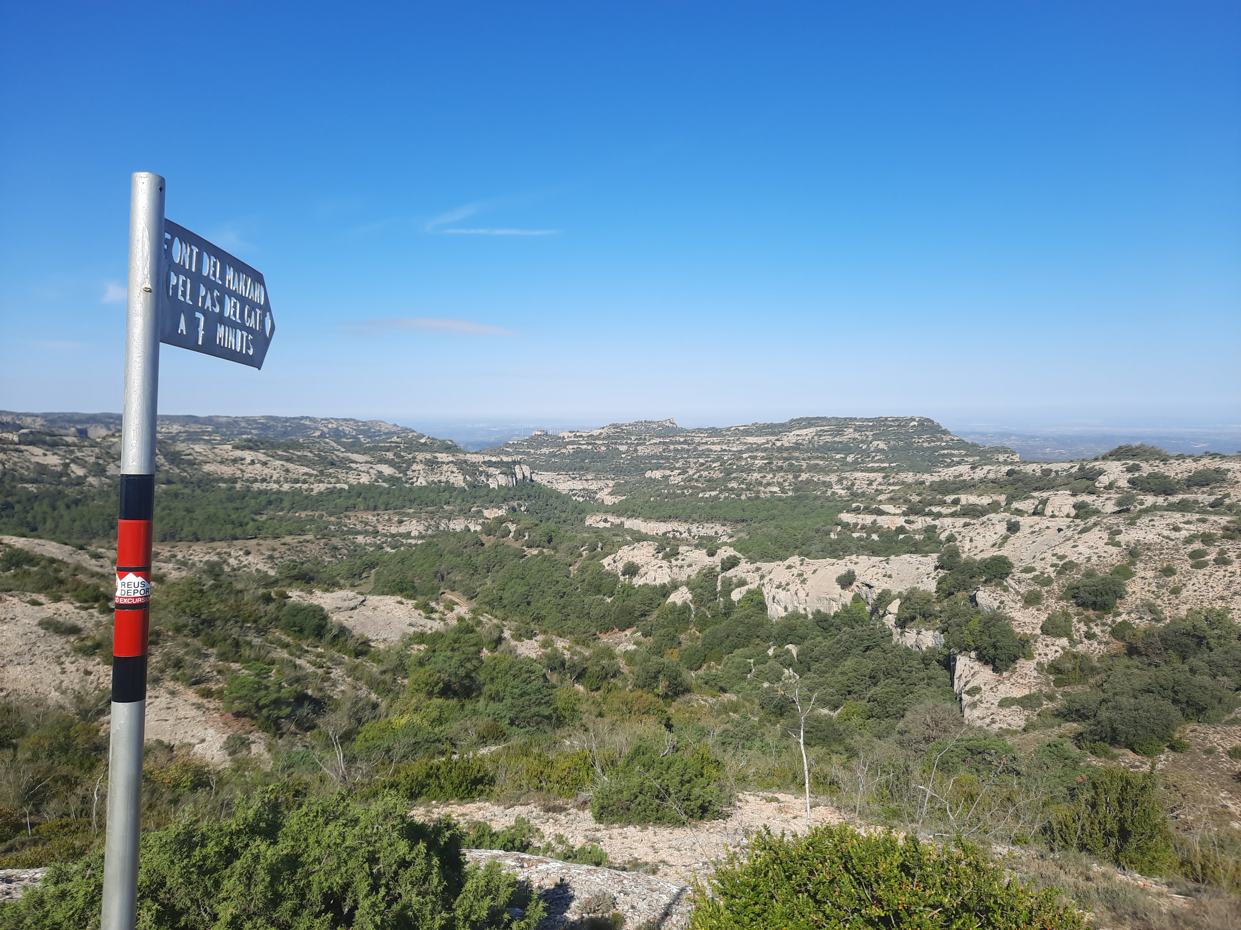 Seguim uns 150 m., i arribarem a la carena de la Serra de Montsant, la Serra Major, on agafarem el sender a l’esquerra que en 200 m., ens porta a la Roca Corbatera (1.163 m.), un punt on cal parar i fer una bona visualització de la vista als 360º
