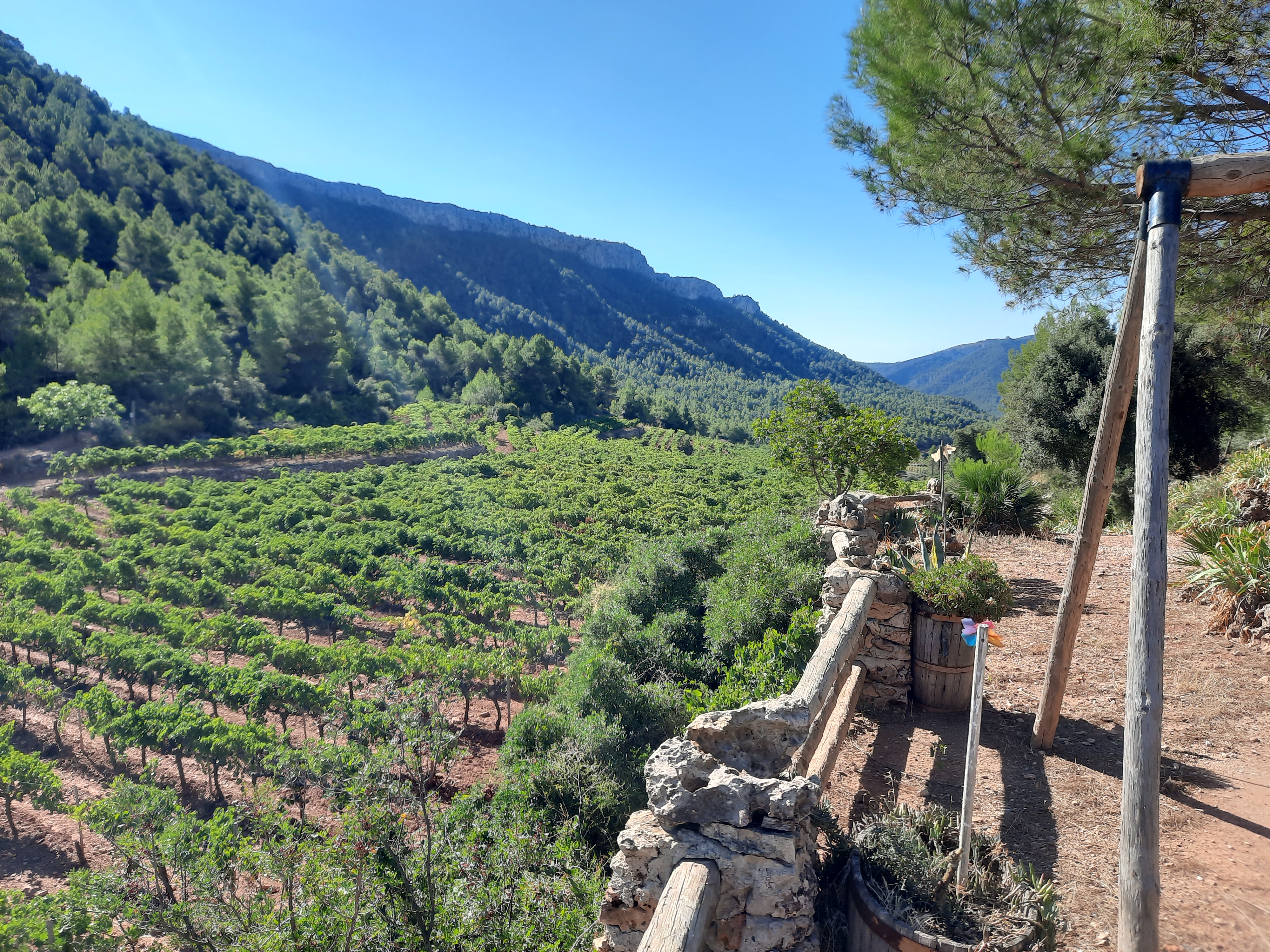 Seguim pel sender uns 400 m., fins trobar la Carrerada de les Taules, ara és un sender, que agafarem a la dreta, per arribar en uns 200 m., a la Caseta de la Vall, on trobarem la vinya conreada a més alçada del sud de la comarca.