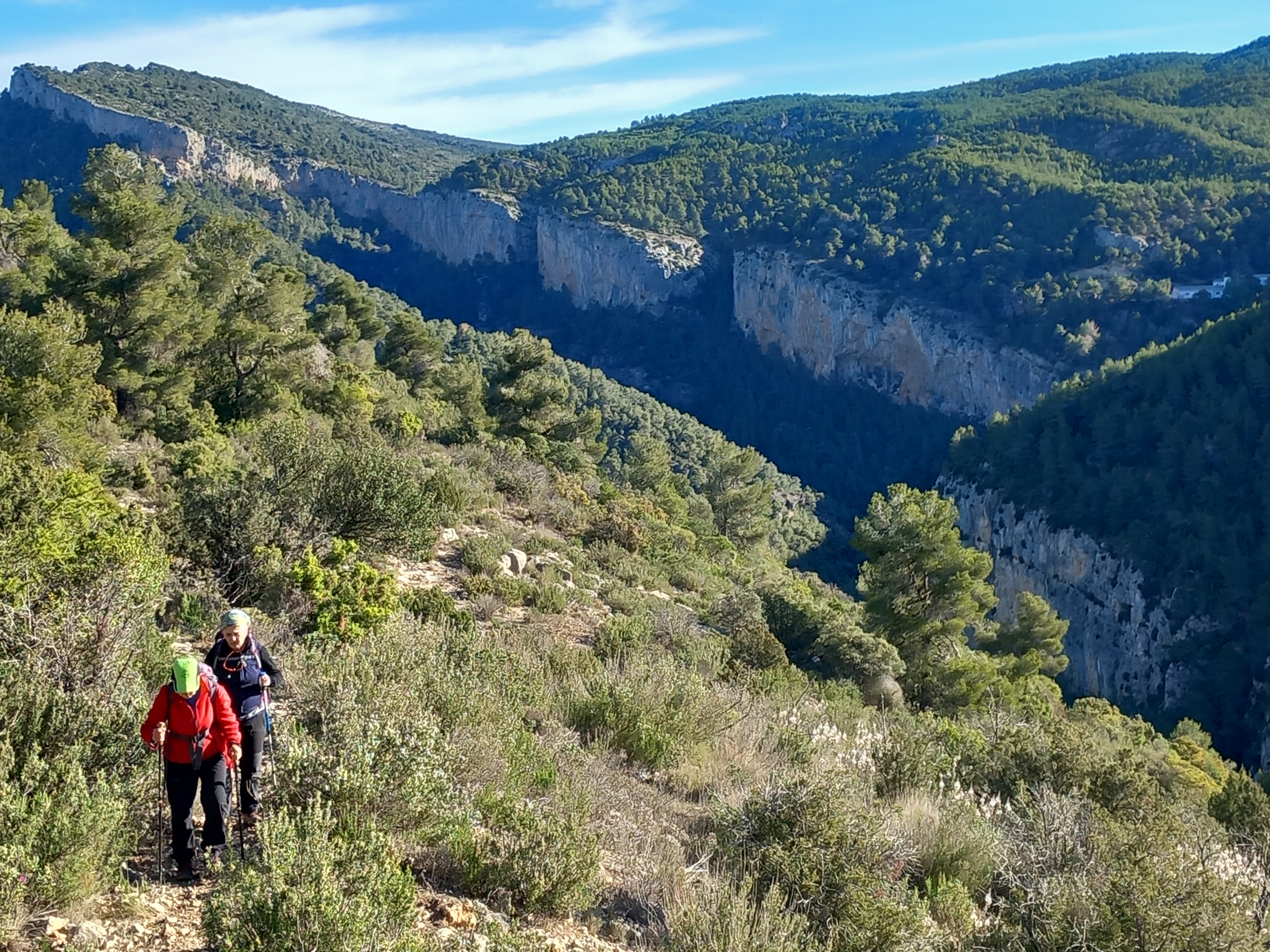 Agafem un sender, sense cap indicador que puja a la dreta, en 100 m. passarem per una cabana de pedra seca, comencem a remuntar el sender que s’enfila pel bonic i tancat barranc de Portadeix, al cap de 1,5 km arribem al Portell de Portadeix, on hi ha una excepcional vista panoràmica sobre el barranc del Tortó, el Mas i el Barranc del Ramer i de la Serra de Llaberia.