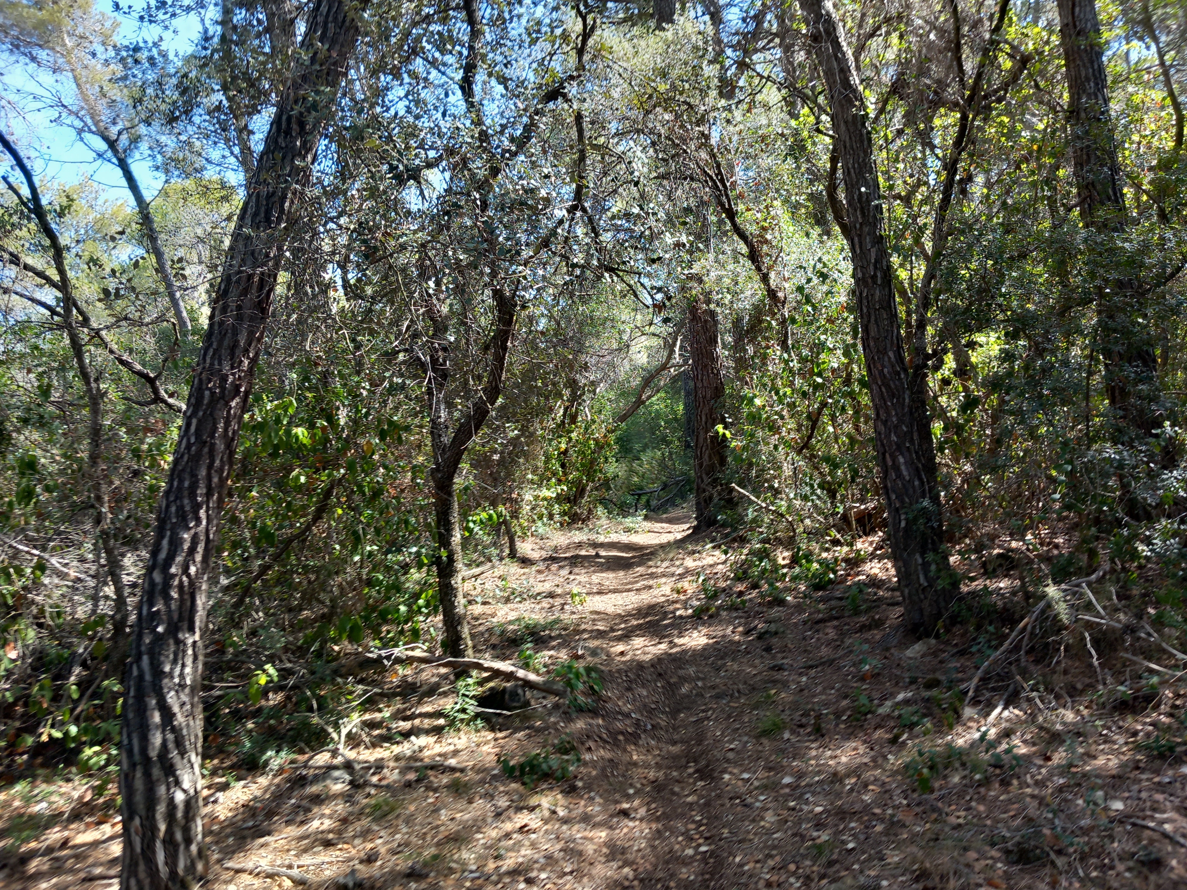 a uns 500 m del Coll deixem el camí de Massanes i agafem un sender que trobarem a l’esquerra.