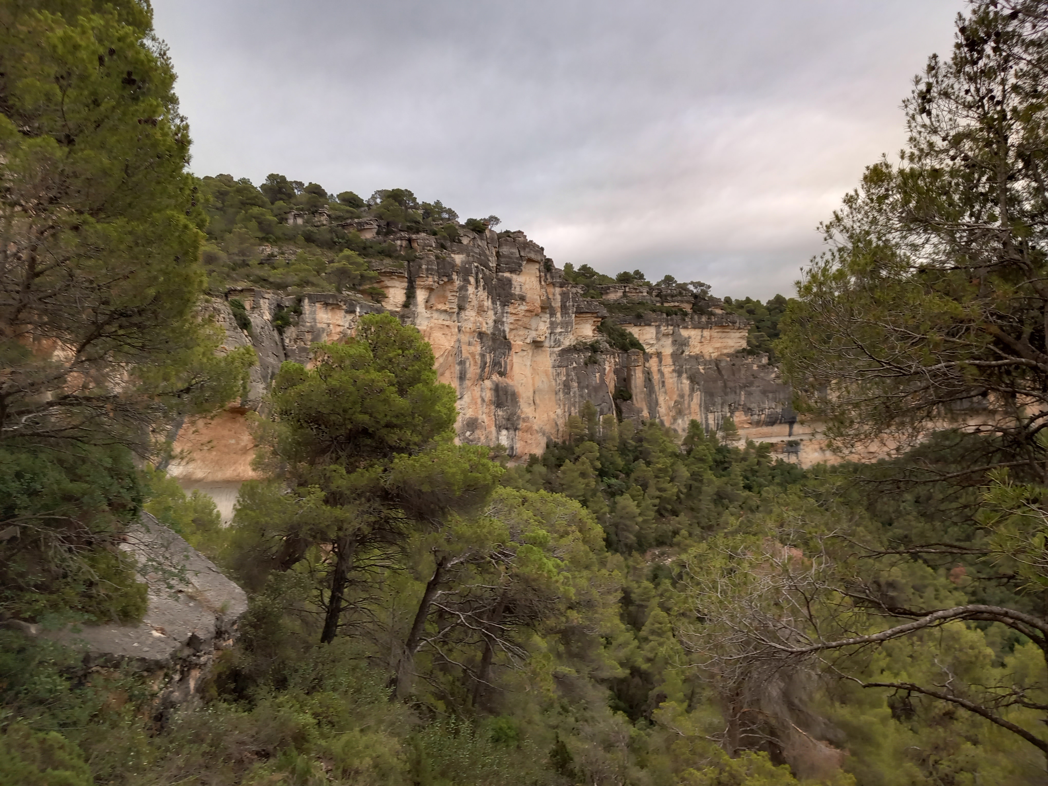 A l’altre costat de la carretera de l’explanada, trobarem l’inici del sender, l’agafem i comencem a pujar, quan portem uns 350 m., agafarem el sender que gira a l’esquerra, ara pugem amb els cingles del Racó del Carletes a la nostra dreta, una paret de roca espectacular.