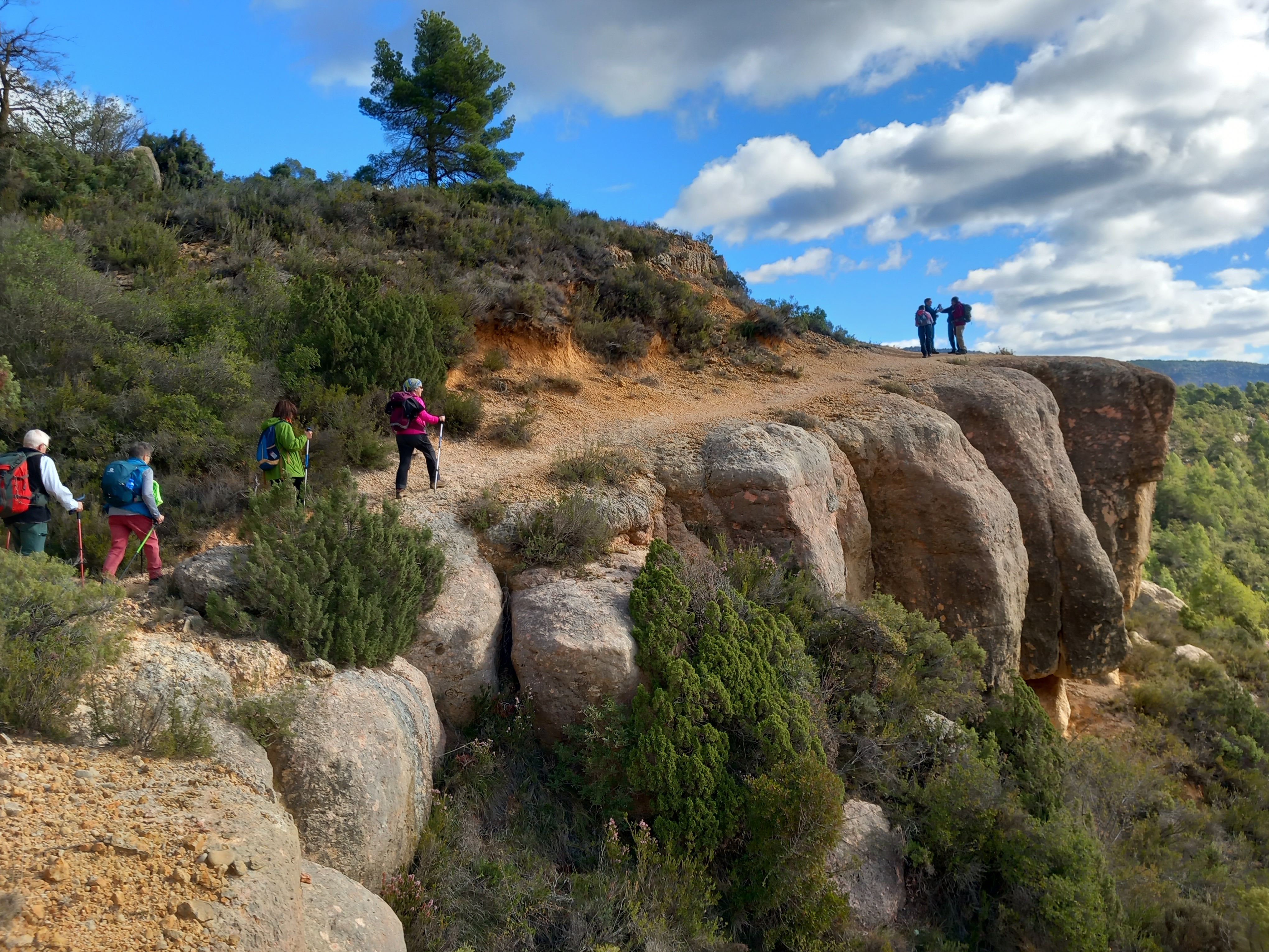 Poc abans del segon Coll, quan portem uns 2 km del camí de la Llisera, trobarem un indicador, en aquest punt deixem el camí de la llisera i agafem el sender que baixa cap a la dreta, vigileu els primer metres, que l’erosió a fet que el sender sigui un petit barranc, ara baixem pel camí de Cartoixans i també és l’antic camí ral de Cornudella a Albarca i de Cornudella a Lleida.