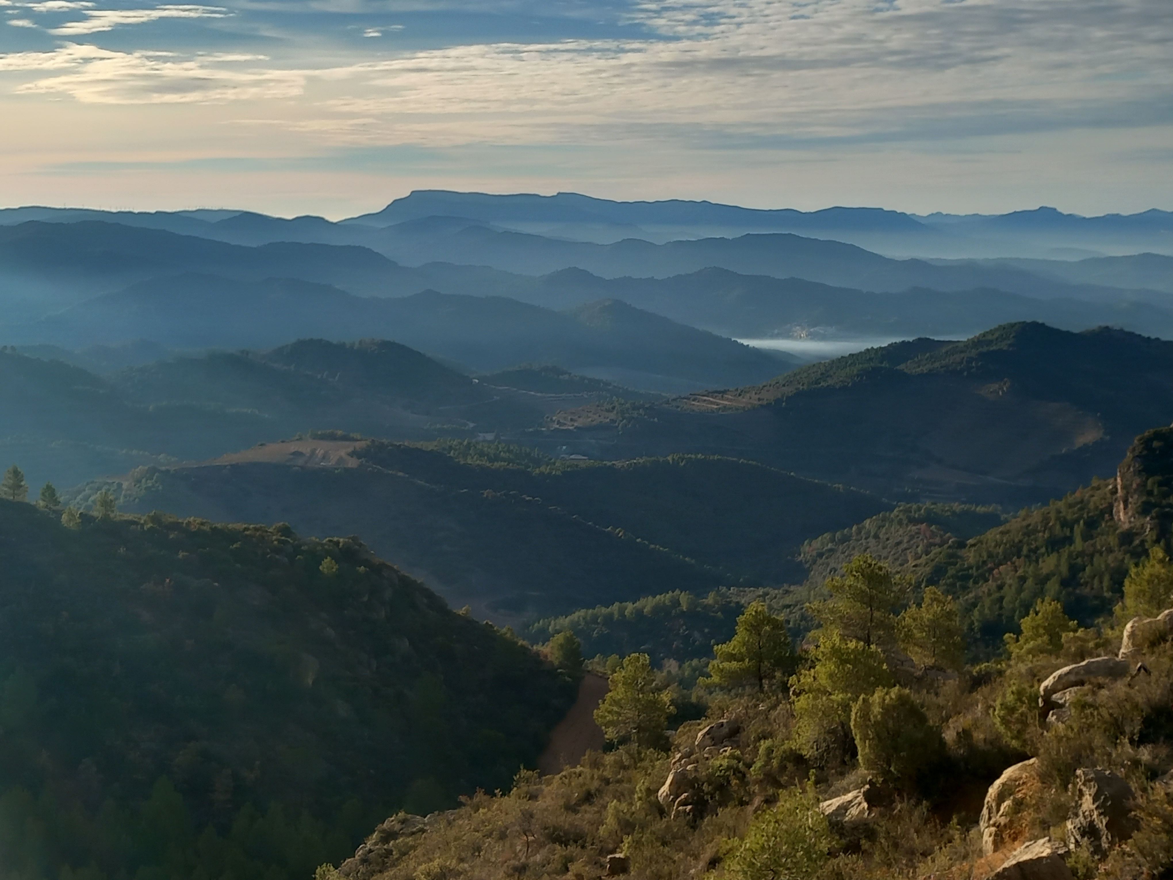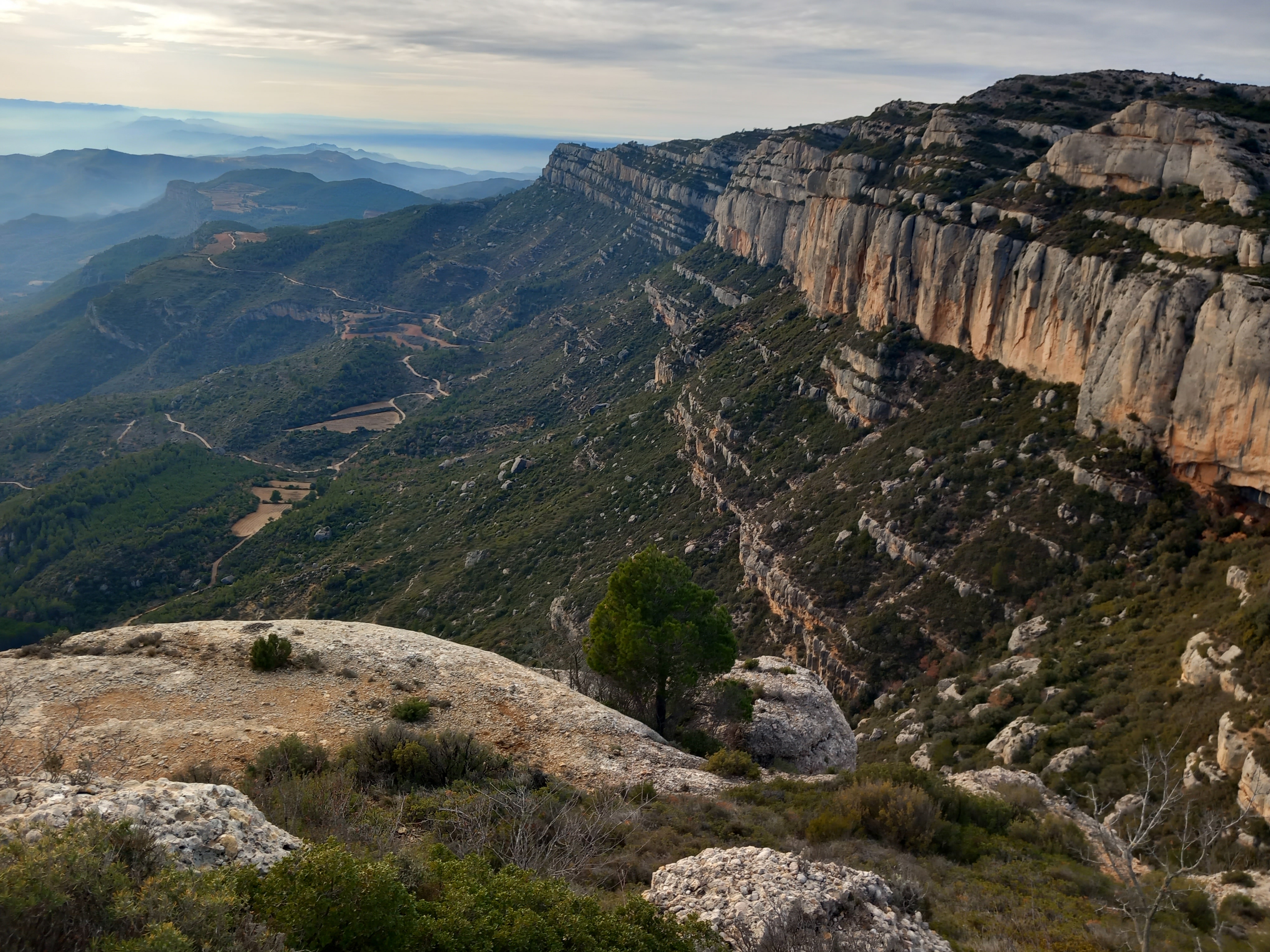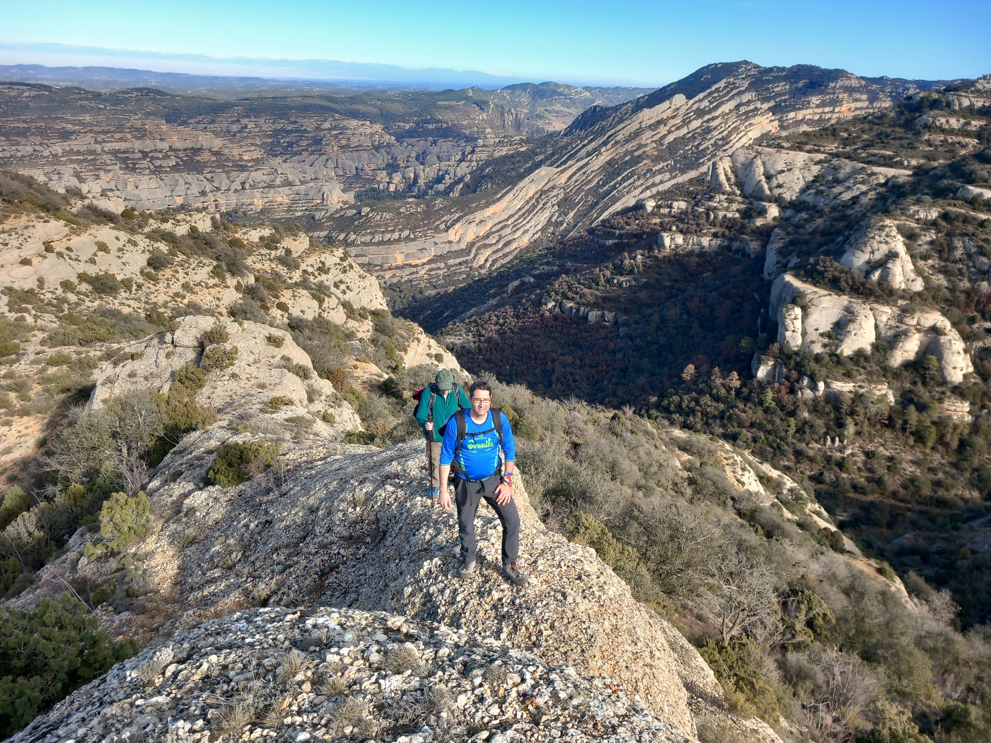Seguim pel sender amb vistes, a la nostra esquerra sobre el barranc de la Taverna, el barranc de Ca l’Obac i barranc de l’Auferí,  segons el mapa del Piolet, anem pel camí de les Cadolles de la Xispa, passats 1,5 km., arribem al Collet del Molló Alt o del Home Mort, quina vista sobre els Ventadors i el riu Montsant! Et deixa sense respiració.