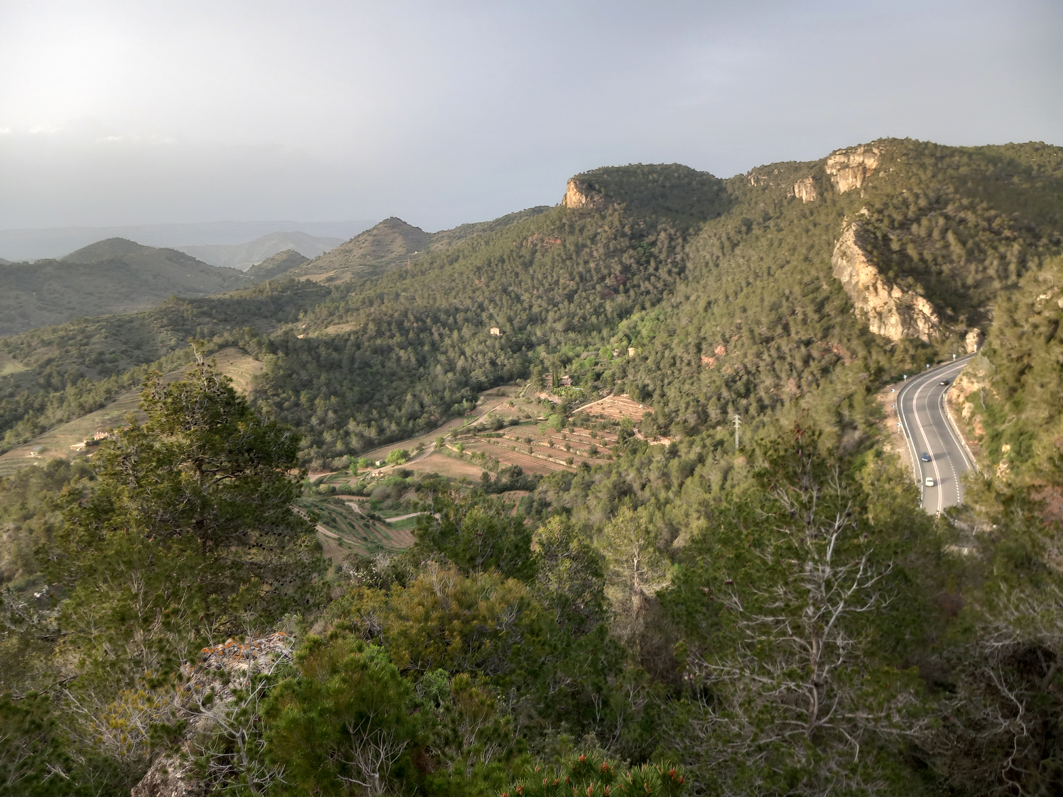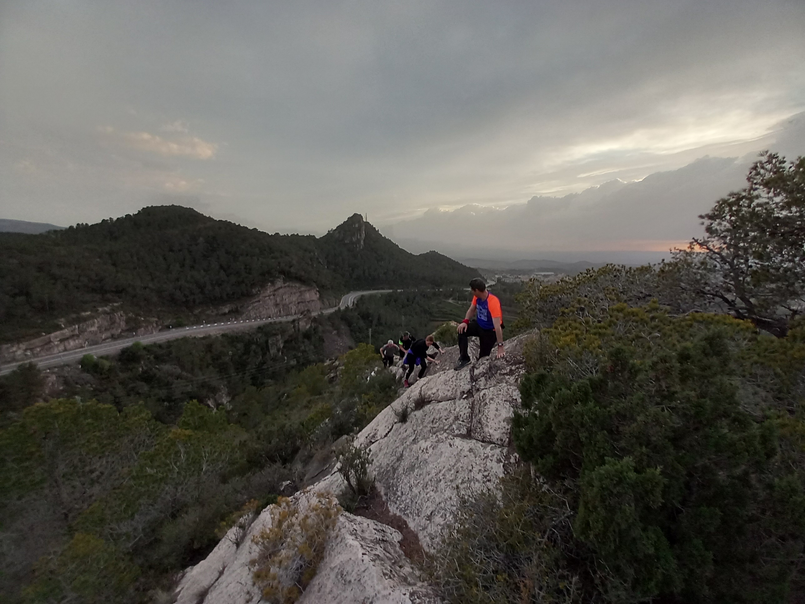 Superat el tram de roca cal seguir un sender que va, més o menys, sempre per la carena fins arribar al Mirador del Cucó, un balcó privilegiat on hi ha una vista aèria espectacular sobre Falset, Marçà i voltants.