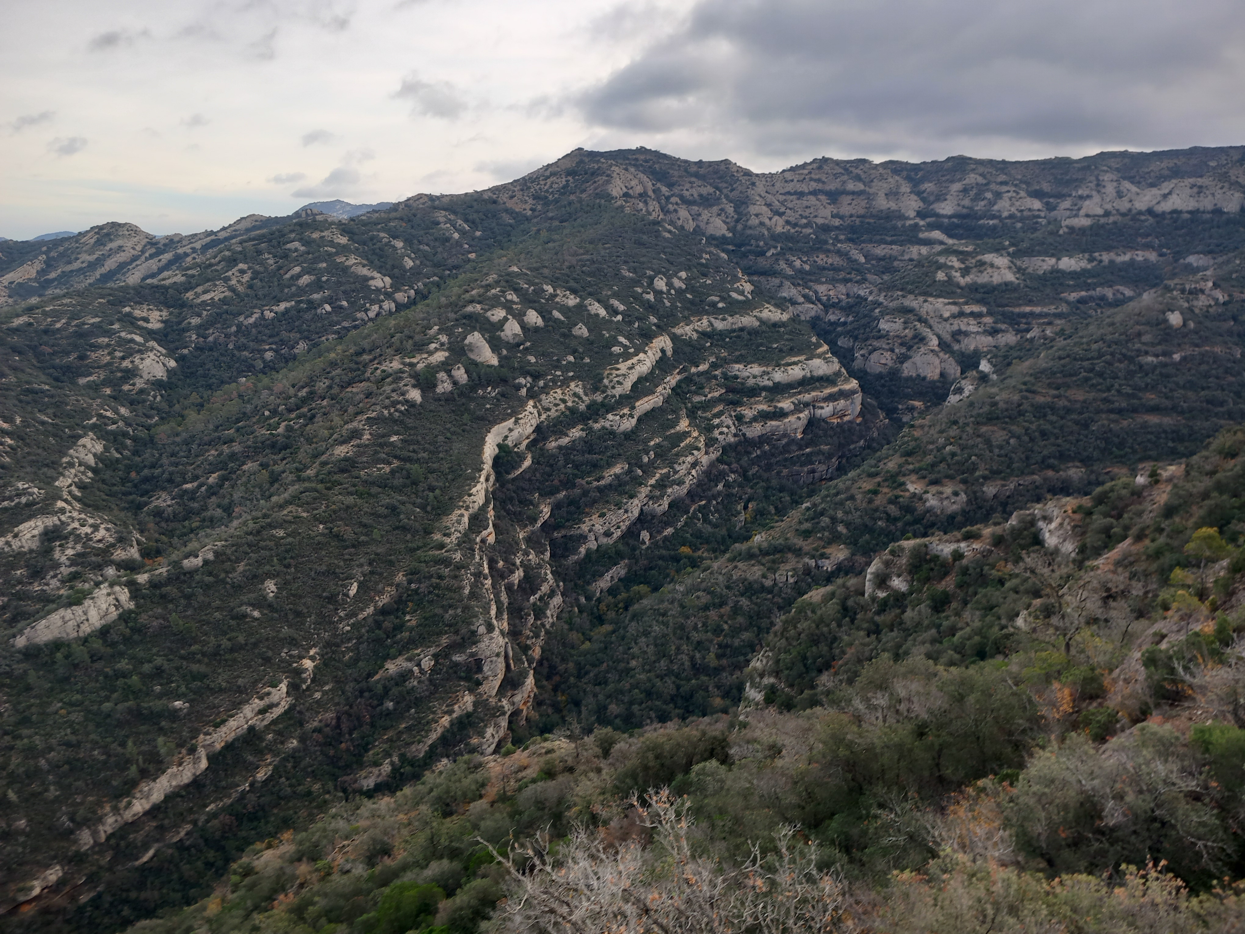 A partir d’aquí el sender va pujant més suaument fins a la Cogulla, amb vistes aèries a banda i banda del la Coma Closa i del Barranc de la Taverna. Arribarem a la Cogulla, amb un vèrtex geodèsic, amb vistes als 360º, on podeu veure l’embassament, el Pirineu, la Serra Major,… En aquets punt agafem la serra Major, direcció a Albarca, a l’esquerra, a l’est, durant uns 600 m., fins que trobarem un indicador on girarem a l’esquerra direcció al barranc de la Taverna.