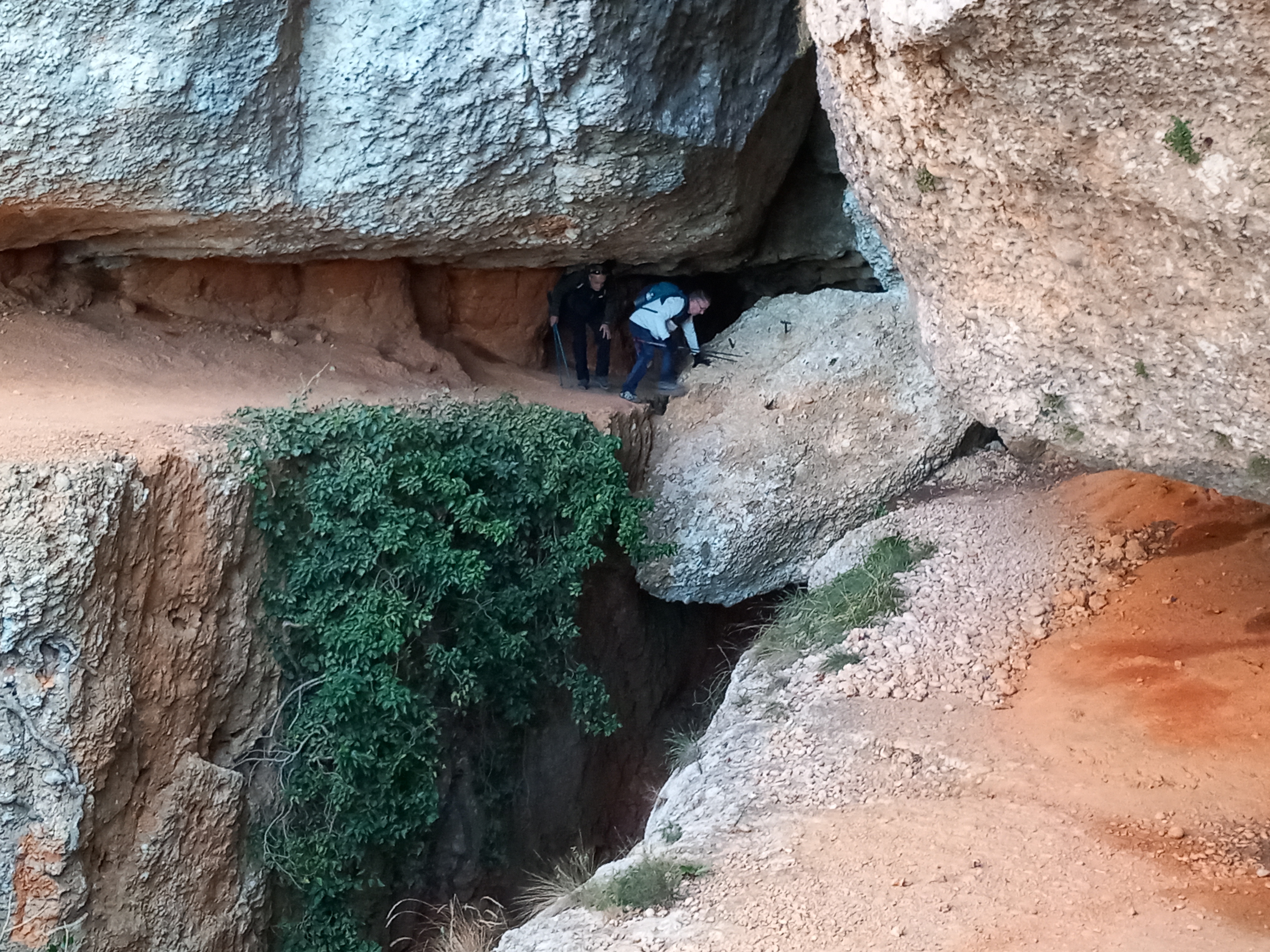 Aquí, us recomanem, abans de creuar, anar a guaitar, seguint el prestatge que fa la roca al cingle, per gaudir d’un espectacle visual,…, ja veureu!