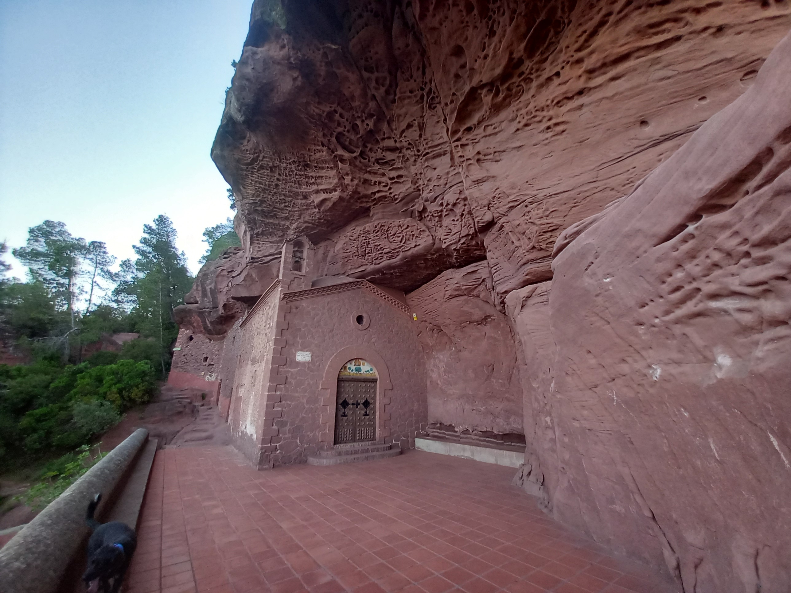 Ara anem plans, passats 150 m., deixem el sender per anar cap a l’esquerra sobre una gran roca roja, es un mirador sobre l’ermita de Sant Gregori i els Racons de Sant Gregori, on es veu molt bé una roca que sembla un elefant. Abans de marxar mireu-vos be la roca, hi ha una inscripció que diu “VICTORIA” a sobre d’una senyera, possiblement feta per algun milicià republicà, ja que el lloc, per la seva ubicació i alçada, devia ser algun punt de guaita i vigilància on s’hi passaven moltes hores de guàrdia.
