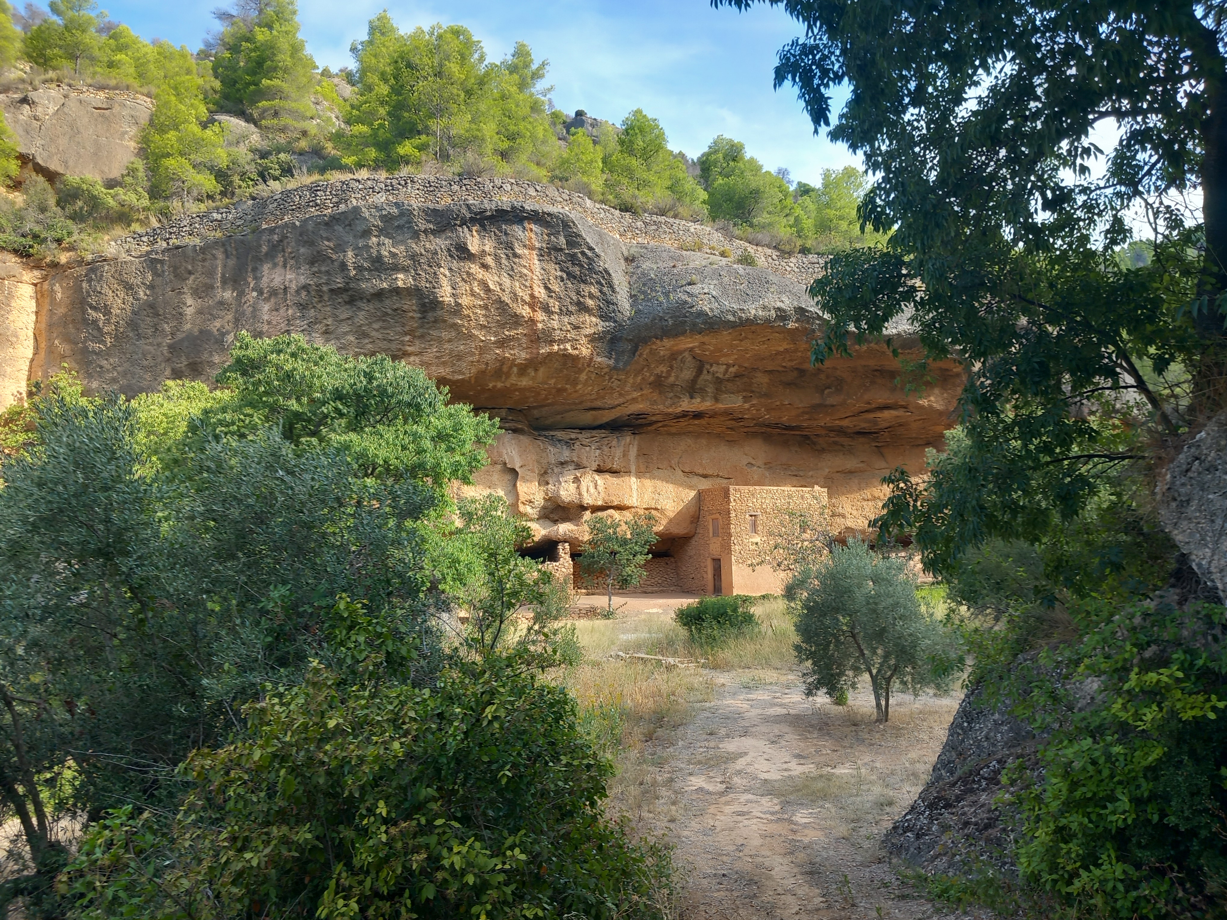 Tornem al camí que baixa cap a Cabacés, baixem uns 150 m., fins el darrer bancal d’olivers, tocant una gran roca, a la dreta comença un sender, sense senyalitzar l’agafem uns 150 m., fins trobar un altre sender, l’agafem a la dreta, ara pugem pel barranc Tancat, a la nostra esquerra podeu contemplar marges impossibles, construïts aprofitant el que no es pot aprofitar, desafiant les lleis i tècniques constructives, i encara aguanten, admirable.